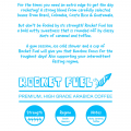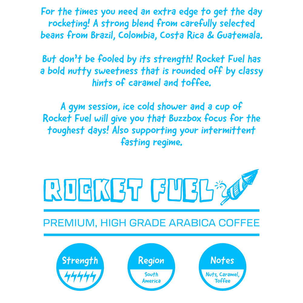 We didn’t want the Rocket Fuel to just be a strong caffeinated coffee so we have chosen this ass kicking blend that will not only give you a good old donkey kick, you will enjoy its thorough and complex make up and smooth malty chocolate, syrupy length!